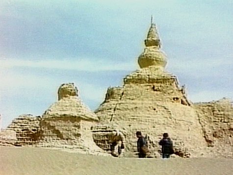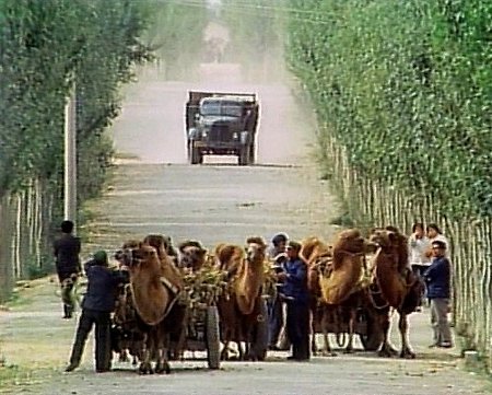 Bueno, pues esta larga introducción viene a cuento de que se ha publicado la primera parte de la serie documental que en 1980 realizó la NHK japonesa y que en su momento fue considerada la mejor de la historia de la televisión. Se compone de diez DVD’s que abarcan el tramo chino de la Ruta desde Xian hasta la cordillera de Tian Shan, en la frontera con el país que en la fecha de realización de la serie era la Unión Soviética. La serie se presenta como una teórica coproducción de la NHK con la CTTV china, pero en realidad hubo grandes obstáculos de tipo político que superar, ya que en principio la República Popular China negaba el paso de las cámaras de televisión. Tras una visita a Japón del primer ministro chino Den Xiaoping los hábiles negociadores nipones obtuvieron el permiso y un equipo de la NHK -del que solo aparecen en imagen dos Nissan Patrol rojos- partió de Xian en dirección al misterioso Occidente.