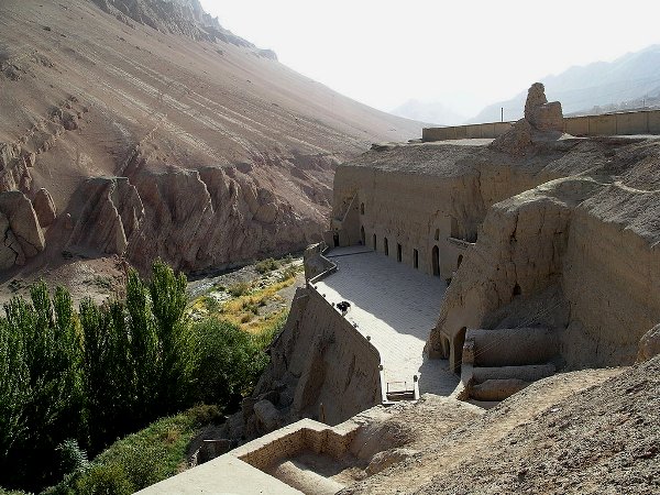 Las grutas de Bezeklik están situadas sobre un acantilado en el Valle de las Montañas de Fuego, a unos 50 kilómetros al este de Turfán. Como en el caso de Dunhuang, se trata de un conjunto de cuevas, unas cuarenta, talladas en la roca, decoradas con frescos budistas y de otras religiones, como maniqueísmo y nestorianismo.