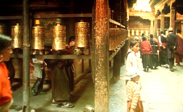 Lhasa está rodeada por tres círculos concéntricos, que son recorridos por los peregrinos alrededor de la ciudad. La circunvalación como práctica religiosa es heredada de los hindúes y se circunvalan las stupas, los templos y hasta las montañas, siempre en sentido de las agujas del reloj. El primer círculo, el más interno, se llama nangkhor y rodea el perímetro del Jokhang. Los peregrinos hacen girar los molinos de oraciones allí situados. El barkhor o segundo círculo concéntrico pasa por el mercado de Lhasa, del que el documental nos ofrece imágenes actuales y de archivo, éstas en blanco y negro, cedidas por el gobierno de la República Popular China. El lingkhor o anillo más exterior rodea Lhasa y marca la zona a partir de la cual se encuentra uno en territorio sagrado.