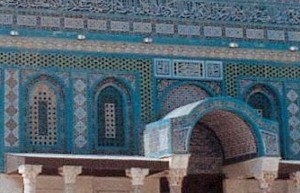 Podemos ver una vista general del exterior de un edificio, como la Mezquita de La Roca en Jerusalén: