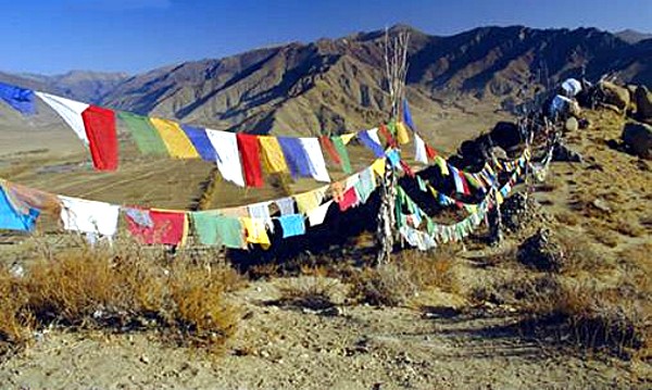 Las banderas de oración sirven para llevar las oraciones budistas a través del viento para que sean esparcidas y bendigan los alrededores. No van dirigidas a los dioses, como algunos dicen. Es frecuente encontrarlas en los pasos de montaña y lugares elevados del Himalaya. Son una característica única de Tíbet y Nepal, ya que en otras ramas del budismo no se utilizan.