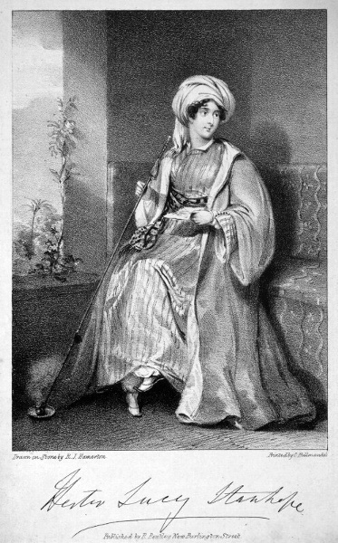 Lady Hester Lucy Stanhope (1776-1839) era la sobrina del primer ministro británico William Pitt. Estuvo al frente de la casa de su tío -ya que éste era un solterón-, haciendo las veces de anfitriona y recibiendo a sus numerosos invitados. Adquirió fama en la alta sociedad británica de ser una excelente relaciones públicas. Cuando Pitt falleció repentinamente, Lady Hester pasó a percibir una pensión vitalicia. Pero su vida en Londres se tornó aburrida al perder las relaciones con los principales políticos del partido tory y, tras la muerte de su hermano, se trasladó a vivir a Gales. Para entonces sus padres ya no vivían. Su madre había fallecido cuando ella contaba tan solo cuatro años.