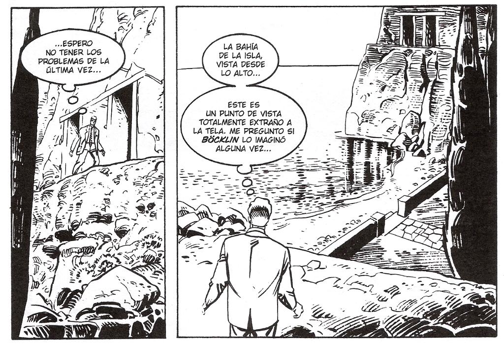 En los números 11 y 12 de la colección de cómic de Martin Mystere que la editorial Aleta está publicando ahora en España, este célebre investigador de fenómenos paranormales es abducido al interior del cuadro de Bocklin. En las viñetas podemos verlo recorriendo la isla, circunstancia que el dibujante aprovecha para ofrecernos algunas perspectivas que ni el mismo Bocklin habría sospechado: