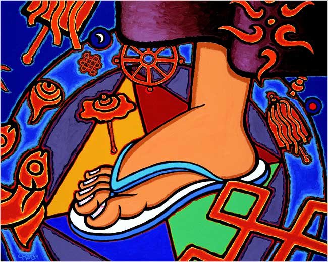 Ochenta y ocho artistas contemporáneos de veinticinco países, entre los que destacan nombres como Richard Avedon, Laurie Anderson, Richard Gere o Ryuichi Sakamoto, exponen una amplia variedad de trabajos inspirados en la persona y en las ideas del Dalai Lama.