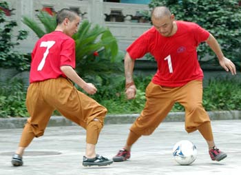 ¿A que nunca se les había ocurrido relacionar las dos palabras que forman el título de este post? A mí tampoco. Pero en el templo de Huayan, al sudoeste de China, los monjes budistas han creado un equipo de fútbol, como pueden ver en las fotos de la agencia Xinhua. Al menos espero que los partidos transcurran dentro de la más espiritual deportividad.