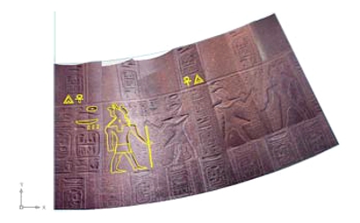Por ejemplo, superponer imágenes de una pared o una columna en un modelo digital del edificio entero; resaltar los contornos de los caracteres jeroglíficos o de elementos ornamentales; tomar imágenes desde un ángulo oblicuo y luego colocarlas de frente; «desenrollar» una columna para ver su decoración en un plano.