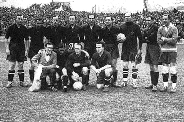 En la foto, la selección española de fútbol en un partido contra Portugal, disputado en Madrid el 11 de marzo de 1934. La victoria de España le dio la clasificación para el Mundial de Italia.