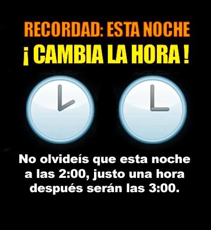 Acabo de darme cuenta de que esta noche volveremos a sufrir el molesto e inútil cambio de hora, para adoptar el llamado ‘horario de verano’ y esta vez voy a aprovechar que tengo un blog para manifestar mi protesta por esta medida arbitraria y atentatoria contra la salud pública.