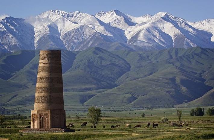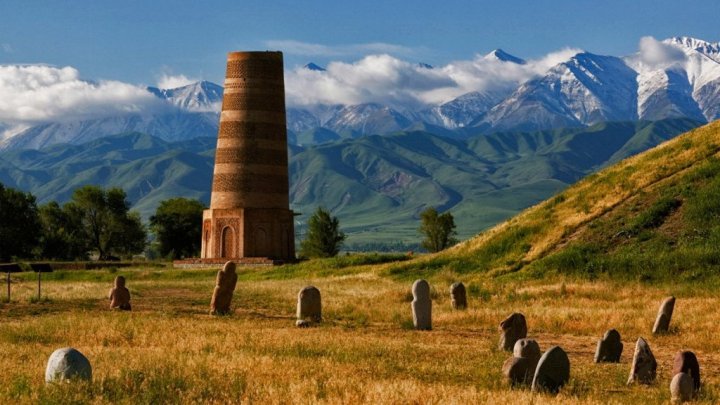 La torre de Burana es un minarete que se alza en el valle de Chui en Kirguistán. Está situada a unos 80 km al este de la capital Bishkek, cerca de la ciudad de Tokmok (v. google maps)