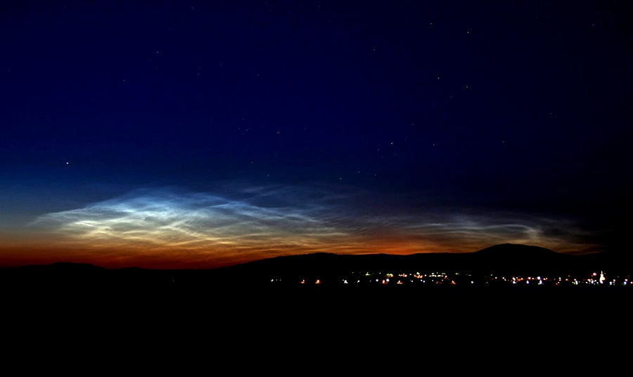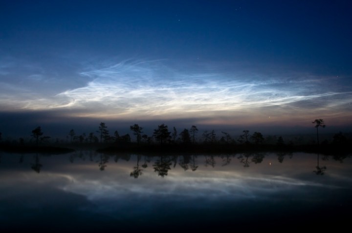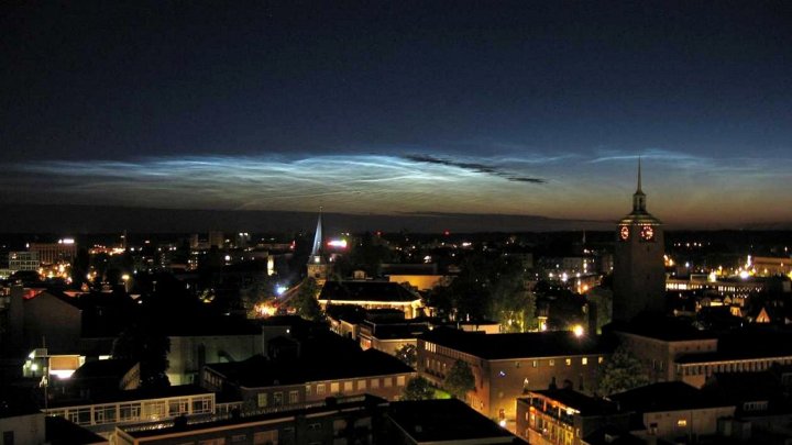 Las nubes noctilucentes o que brillan de noche, también llamadas nubes polares mesosféricas, son las que se forman a mayor altitud del planeta, a unos 85 km sobre las zonas polares. Los científicos no han llegado a comprender este fenómeno del todo y hay una misión de la NASA investigándolo. Se ven solamente en esta época (tras el solsticio de verano) y durante el crepúsculo. Son bellas y misteriosas.
