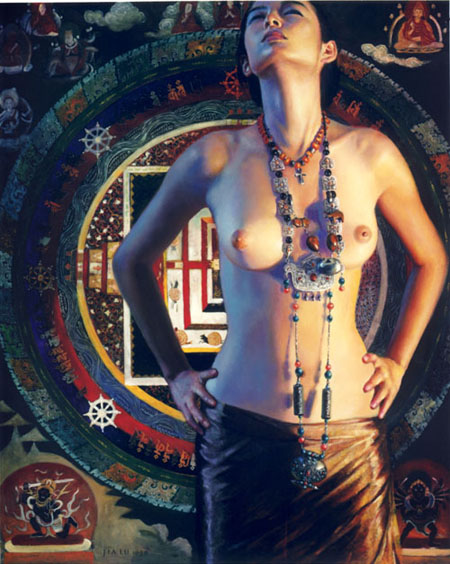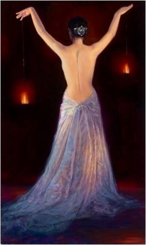 Jia Lu: “Las ideas para mis pinturas vienen de mis lecturas poéticas y filosóficas, y de las artes visuales, como el cine y el teatro. Me encanta la ópera y la danza, porque adoro la luminación dramática y los escenarios elaborados.”