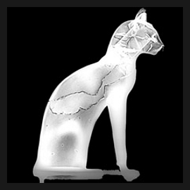 El análisis ha probado que el gato ha sido reparado en varias ocasiones, antes de su llegada al museo en los años cuarenta. Se sabía que había sufrido algunas roturas, pero el examen mediante rayos X ha demostrado que sus daños fueron mayores de lo que se pensaba. Hay una gran fisura alrededor de todo el cuerpo.