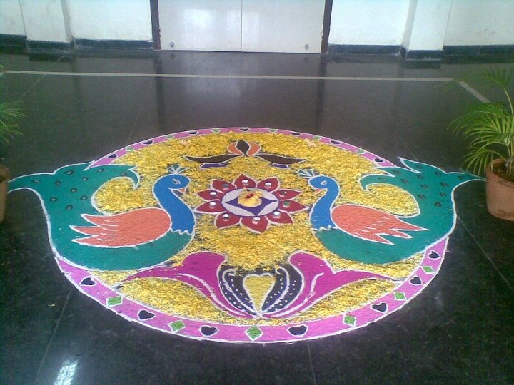El Festival de Mylapore se celebra anualmente durante el mes de enero en Chennai (Tamil Nadu, India). Además de otras actividades se organiza un concurso de kolam o dibujos decorativos simétricos pintados en el suelo a la puerta de las casas. Tradicionalmente son realizados por las mujeres -ahora también por los hombres- con polvo de arroz y a veces de ladrillo para darles color rojizo. Modernamente se pintan con tiza.