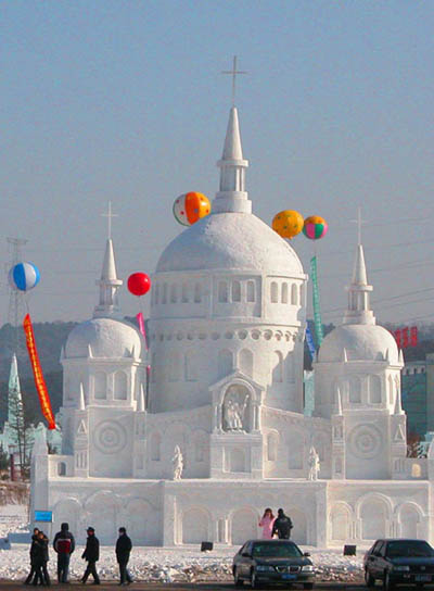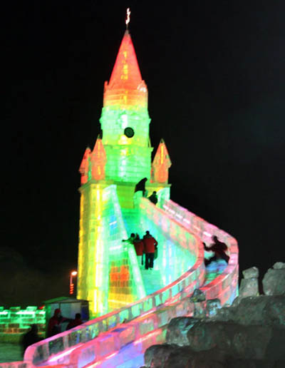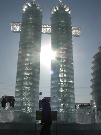 No me gusta repetirme, pero después de hablar del Festival de hielo de Harbin he encontrado más esculturas de hielo, algunas tan impresionantes como esas pagodas y castillos de Shenyang (Liaoning, China).
