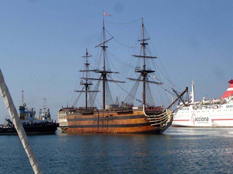 Desde hace unos meses fondea en el puerto de Málaga una réplica del navío español Santísima Trinidad. El original fue construido en La Habana y botado en 1769.
