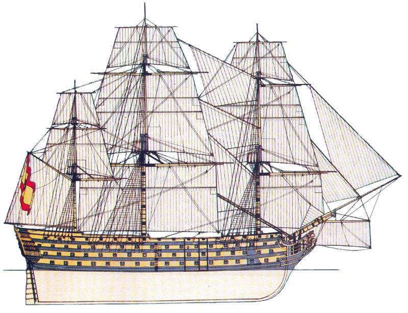 El Santísima Trinidad fue buque insignia de la armada española y se distinguió en las guerras contra Inglaterra. Fue proyectado según las normas de Jorge Juan y diseñado por el irlandés Mateo Mullan, el cual falleció repentinamente sin ver su obra terminada, siendo su hijo Ignacio el encargado de hacerlo. Pedro de Acosta sería el responsable de la dirección de las obras, pero también fallecería de forma prematura. Quizá a estas circunstancias se deban los muchos problemas que el barco siempre arrastró.