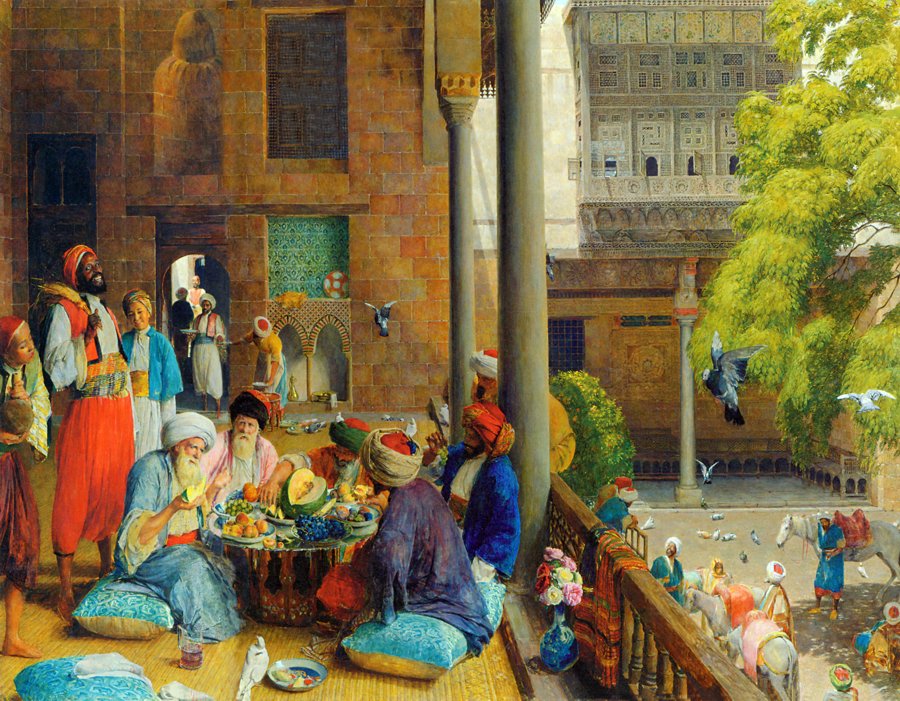 Antes de regresar a Inglaterra, Lewis hizo un breve viaje a Marruecos, donde tomó contacto con la cultura islámica que influiría decisivamente en su obra. Más tarde visitó Francia e Italia y vivió en El Cairo entre 1841 y 1850, donde hizo numerosos bocetos que transformó en pinturas a su regreso a Inglaterra en 1851.