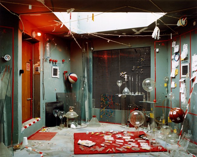 Anne Hardy (1970) es una artista británica que fotografía espacios interiores sumidos en el caos y el desorden. No se trata de improvisaciones. Ella misma se encarga de obtener todo tipo de objetos -rotos o inútiles, no importa su estado- y crea escenarios que puede tardar meses en diseñar y construir.