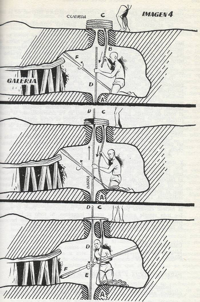 Por último, el padre López Guerrero en su libro Mirando a la lejanía del universo (Plaza y Janés, 1978) ofrece esta explicación, con un hombre oculto en un agujero que sustituye la cuerda por una barra.