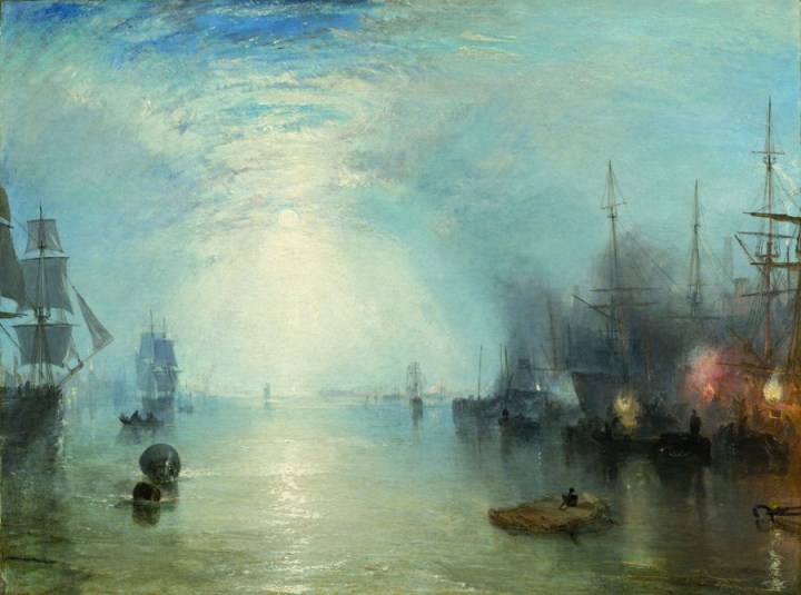 «En una carrera que abarcó más de seis décadas, Joseph Mallord William Turner desarrolló una amplia variedad de temas, desde paisajes -género que él dominó durante la primera mitad del siglo XIX en Gran Bretaña- hasta escenas históricas y modernas, así como temas de su propia invención. La fascinación por la luz y el color caracteriza su trabajo en todos los estilos. Además sus innovaciones técnicas, sobre todo en acuarela, tuvieron un profundo impacto sobre la posterior evolución artística.»