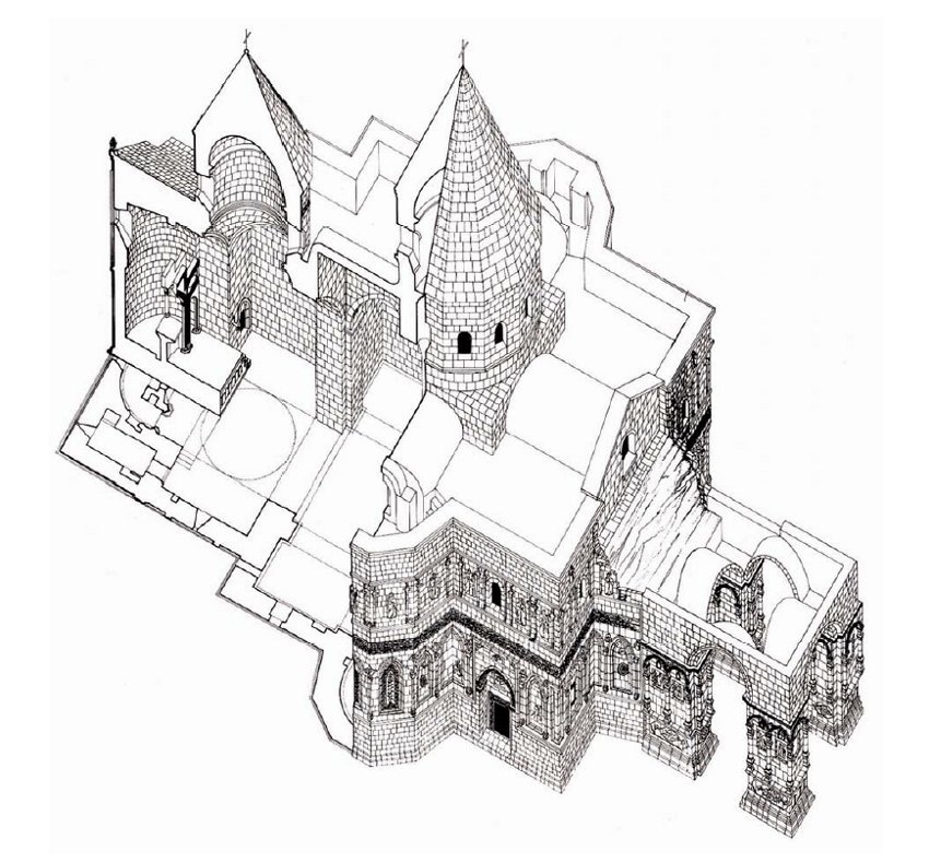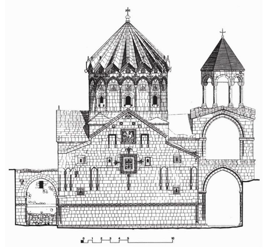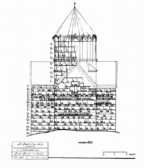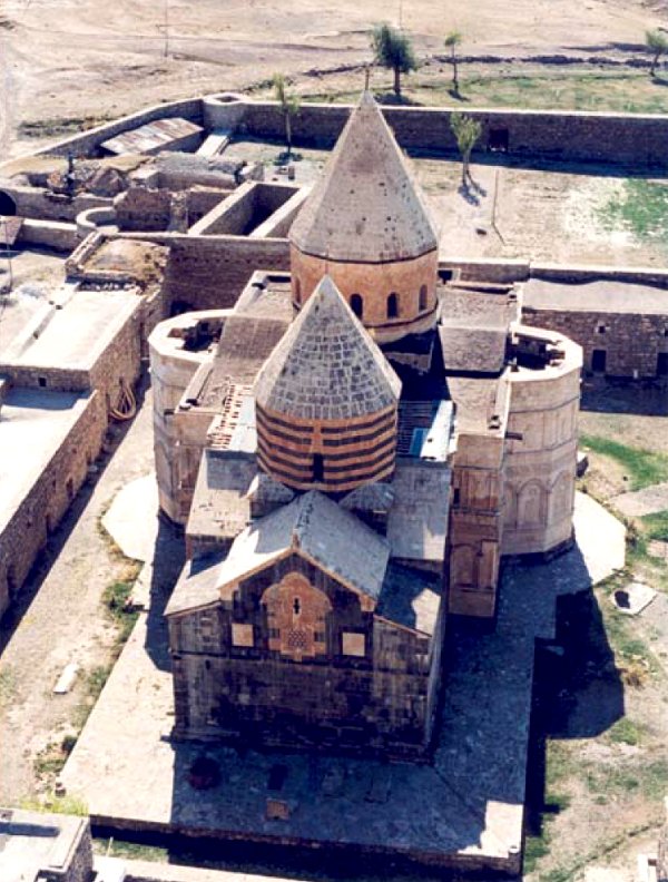 En investigaciones detalladas hechas durante 1970 se han podido determinar, a partir de inscripciones, ocho períodos en su construcción. El edificio ha sido víctima de varios terremotos. Su última y principal reconstrucción la ordenó el shah Abbas II (1633-1666), un rey persa tolerante con los cristianos.
