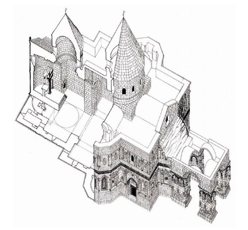 Las dos últimas imágenes muestran la capilla en su lugar original y un plano con las piedras numeradas utilizado para la posterior reconstrucción.