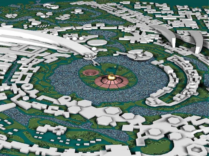 Aunque la población prevista era de cincuenta mil habitantes, en la actualidad viven poco más de dos mil, de cuarenta y cuatro nacionalidades.