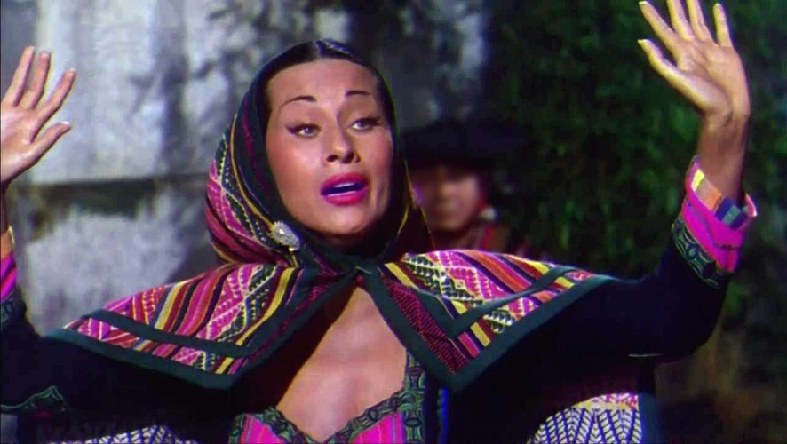 Por cierto, muchos piensan que el aventurero que protagoniza esta película, interpretado por Charlton Heston, es una de las grandes inspiraciones de Indiana Jones. Veámoslo en esta escena, al tiempo que disfrutamos de nuevo de la inigualable Yma Sumac: