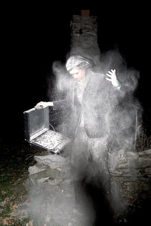 La fotógrafa Dana Hoey (1966, San Francisco, California), residente en Nueva York, presenta en la galería Friedrich Petzel de esa ciudad Experiments in Primitive Living, una serie de 40 fotografías que imaginan lo que sería vivir bajo cinco condiciones climáticas distintas: ceniza, hielo, deshielo, inundaciones y sequía.
