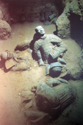 La primera campaña de excavaciones, que duró desde 1978 hasta 1984, dio como resultado el descubrimiento de 1.087 figuras de arcilla de guerreros en tamaño natural. Sin embargo, después de ser expuestas al aire, todas perdieron su color rápidamente y se volvieron grisáceas y oxidadas. Como las estatuas se limpiaban en el mismo lugar, la pintura expuesta al aire se secaba y se desprendía debido a la pérdida de agua.