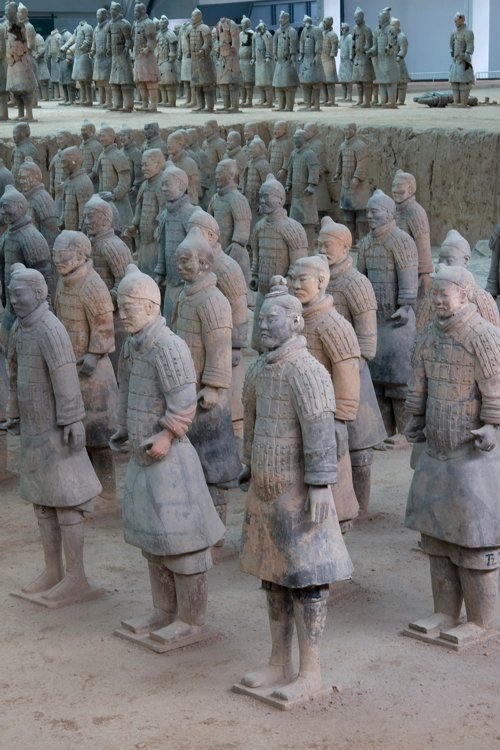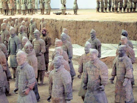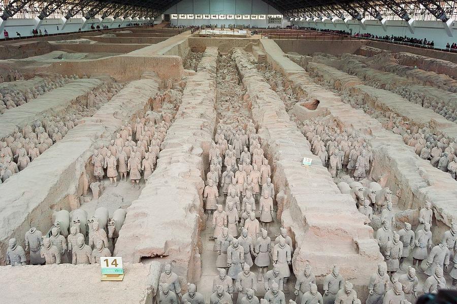 Qin Shi Huang se mudó a su palacio subterráneo a la edad de 49 años después de gobernar durante 15 años y de dedicar cerca de 38 años a construir su propio mausoleo, que tiene unos 2,13 kilómetros cuadrados de ancho en su parte central y cubre cerca de 60 kilómetros cuadrados, en la provincia de Shaanxi, al noroeste de China.