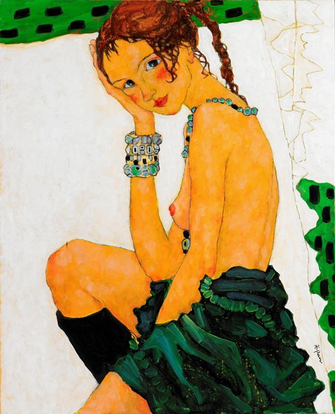Practica un estilo de pintura occidental, siguiendo el camino abierto hace años por su compatriota Pan Yuliang y yo diría que con notable influencia de Modigliani.