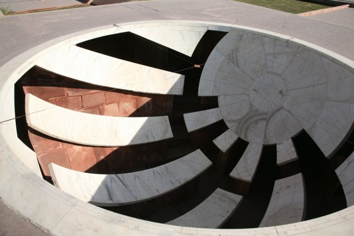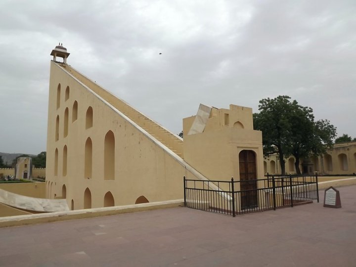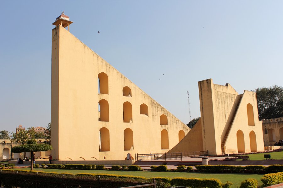 El Yantra Samrat, el mayor de los instrumentos, tiene una altura de 27 m y su sombra está cuidadosamente planeada para que señale la hora del día con una exactitud de unos dos segundos.