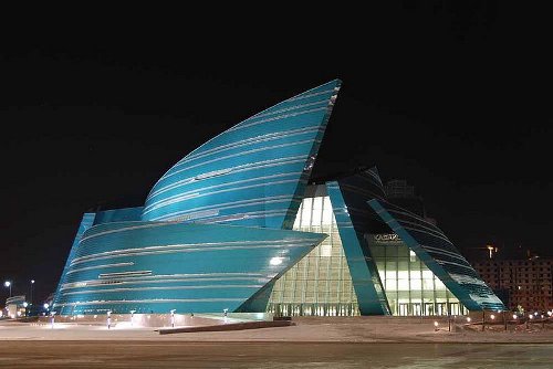 Entre los numerosos edificios singulares está una pirámide plateada de 62 metros de altura, que cambia de color por las noches, diseñada por Norman Foster, así como la torre Beyterek, con una esfera de oro que descansa sobre una estructura de acero blanco y el Palacio Presidencial, inspirado en la Casa Blanca, pero con una cúpula azul añadida.