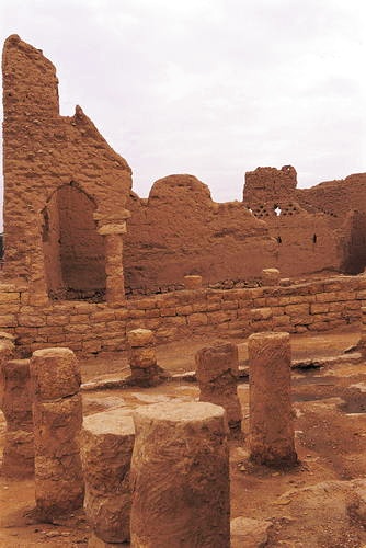 Se conserva parte de la muralla de la ciudad, que corre a lo largo de los bordes de la rambla y que también está echa de ladrillos de barro, junto con restos de algunas torres de vigilancia. Su estilo arquitectónico se denomina najdi y es característico del centro de la península arábiga.