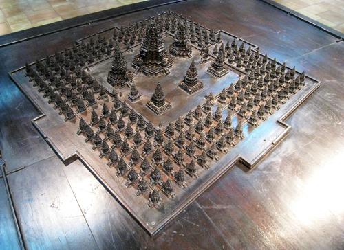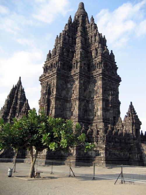 El complejo de Prambanan se compone de 237 templos de diferentes tamaños. El templo principal está dedicado al dios Shiva y su nombre original es la Casa de Shiva. Mide 47 metros de altura y representa al monte Meru, morada de los dioses. Está rodeado de galerías decoradas con bajorrelieves que cuentan la historia del Ramayana.