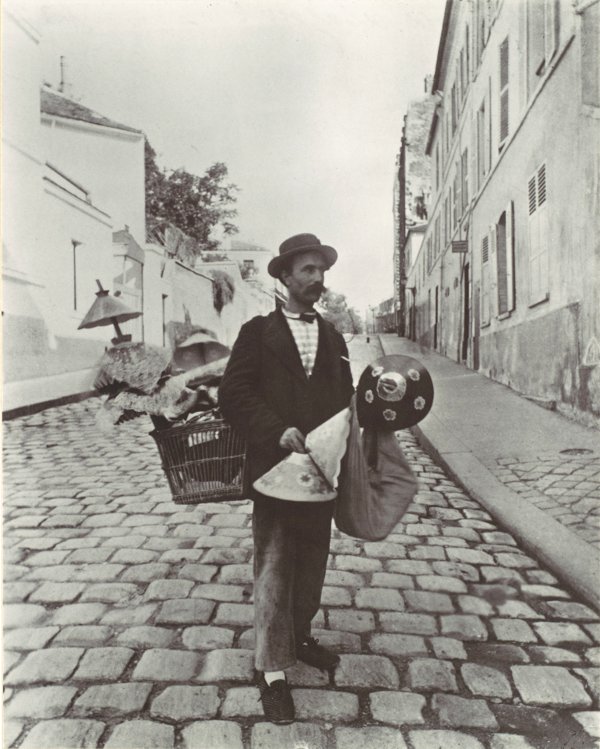 Eugène Atget (Burdeos, 1857 – París, 1927) fue marino y actor antes de instalarse en París y convertirse en fotógrafo. Su propósito inicial no era artístico sino comercial. Vendía sus fotos a los pintores, que las reproducían en sus cuadros. Esto sucedió a mediados de la década de 1890, cuando compró su primera cámara y realizó más de 10.000 imágenes de personas y paisajes de la capital francesa. En 1899, se trasladó a Montparnasse, donde vivió con modestos ingresos hasta su muerte en 1927.