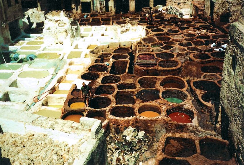 En la antigüedad el curtido del cuero se consideraba una actividad nociva y era relegada a las afueras de las ciudades. Las célebres curtidurías de Fez se encuentran en una zona que apenas ha cambiado desde la Edad Media. El olor es muy fuerte y a veces provoca náuseas a los turistas que acuden a la zona.