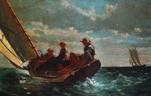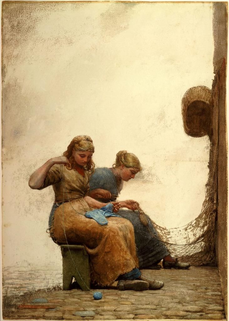 Homer pasó dos años (1881-1882) en la aldea de Cullercoats en la costa de Inglaterra, pintando hombres y mujeres en su trabajo cotidiano. De vuelta a Estados Unidos, durante el resto de la década de 1880, pintó grandes escenas marinas.