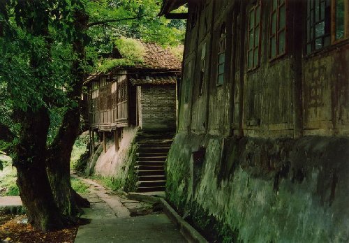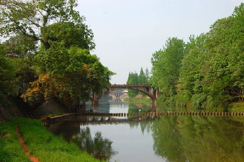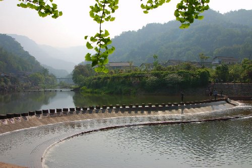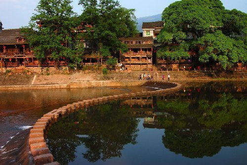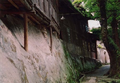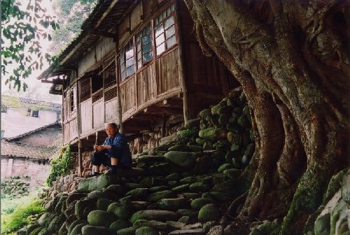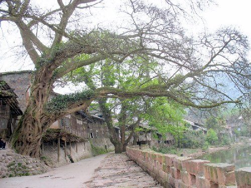 Caminando hacia el este a través de la ciudad, puede verse una enorme higuera junto al río Huaxi. Una pasadera hecha de adoquines se construyó sobre el río, que es utilizado por mujeres de la localidad para lavar la ropa. Las puertas y ventanas de madera, los azulejos negros y los líquenes en las paredes convierten este pueblecito en un lugar pintoresco.