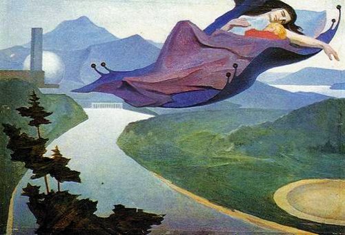 Sus obras se inspiran en la ciencia ficción y algunos de sus personajes parecen estar influidos por el art nouveau. Hoy en occidente probablemente lo calificaríamos de arte pop. Aunque su estilo no encajaba del todo en el arte oficial del régimen, se le aceptó interpretando que sus obras representaban el brillante futuro del pueblo soviético. Fue considerado el fundador de la “ficción psicológica”. Se dijo que sus personajes son héroes que representan la espiritualidad, la responsabilidad y la pureza moral.