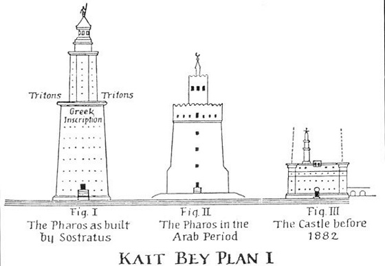 En 1994, restos del edificio original fueron desenterrados de la parte sumergida de la bahía oriental de Alejandría.