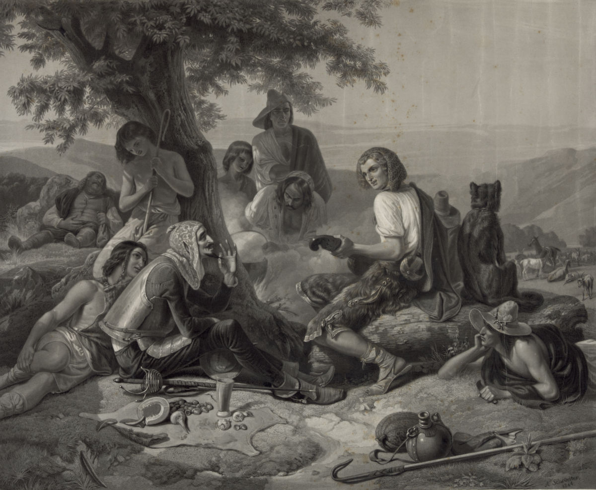 Adolf Schrödter (1805, Schwedt—1875, Karlsruhe) fue un pintor e ilustrador alemán adscrito a la escuela de pintura de Düsseldorf. Su padre era grabador y él aprendió este arte en Berlín como alumno del artista gráfico Ludwig Buchhorn. Desde 1827 se dedicó a pintar en la Academia de Arte de Berlín y en 1829 recaló en Dusseldorf, donde permaneció hasta 1848. Más tarde ocupó una cátedra en Karlsruhe.