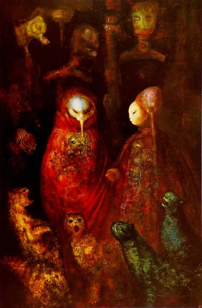 Leonor Fini (Buenos Aires, Argentina, 30 de agosto de 1907-París, Francia, 18 de enero de 1996) se mudó a Trieste cuando era niña después de la separación de sus padres. Con diecisiete años ya era una competente retratista. Realizó su primera exposición individual en Milán en 1929 y se trasladó a París en 1931. Allí se integró entre los artistas del movimiento surrealista, exponiendo con ellos en 1933 y realizando su primera muestra individual en París en 1935. Como influencias en su pintura destacan los manieristas, los románticos alemanes y los prerrafaelitas.