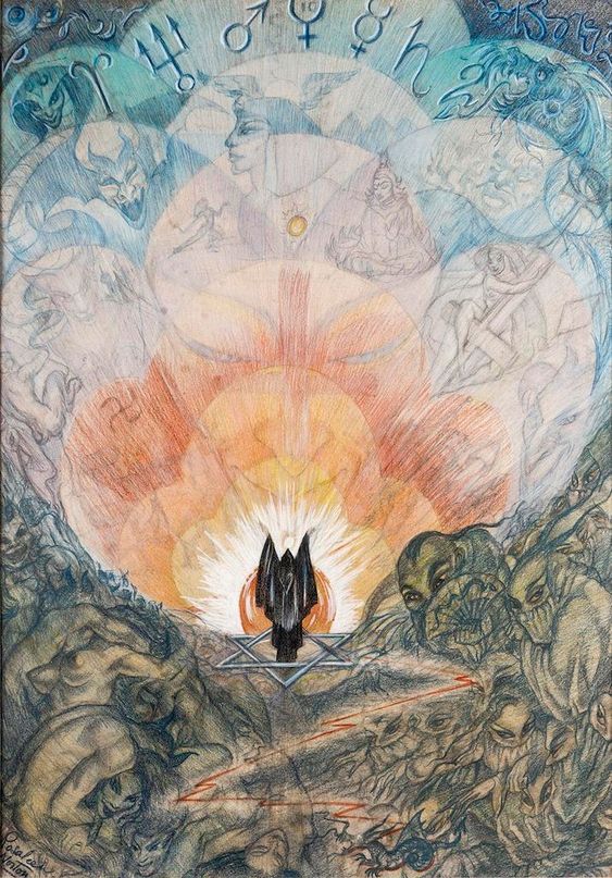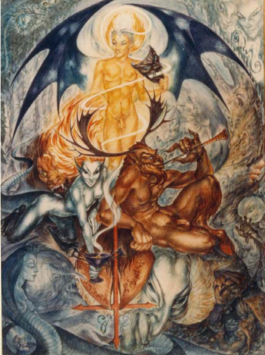 Rosaleen Norton forma parte de ese selecto grupo de artistas visionarios, herederos de El Bosco o William Blake, que reproducen en sus obras la realidad interior y no la exterior. Las pinturas de Norton están pobladas por criaturas residentes en otros planos de existencia, en lo que ella llamaba “el otro reino del ser”, al que accedía en estado de trance de forma natural y solo ocasionalmente mediante el uso de drogas. Según la bruja de King Cross, en esa otra realidad los pensamientos se vuelven tangibles y visibles y a menudo asumen forma antropomórfica. Aunque se consideraba seguidora de Jung, para ella Lucifer, Lilith, el dios Pan y otros seres mitológicos que aparecen en sus cuadros no son arquetipos del inconsciente colectivo, como afirmaba el psiquiatra suizo, sino entes con vida propia.